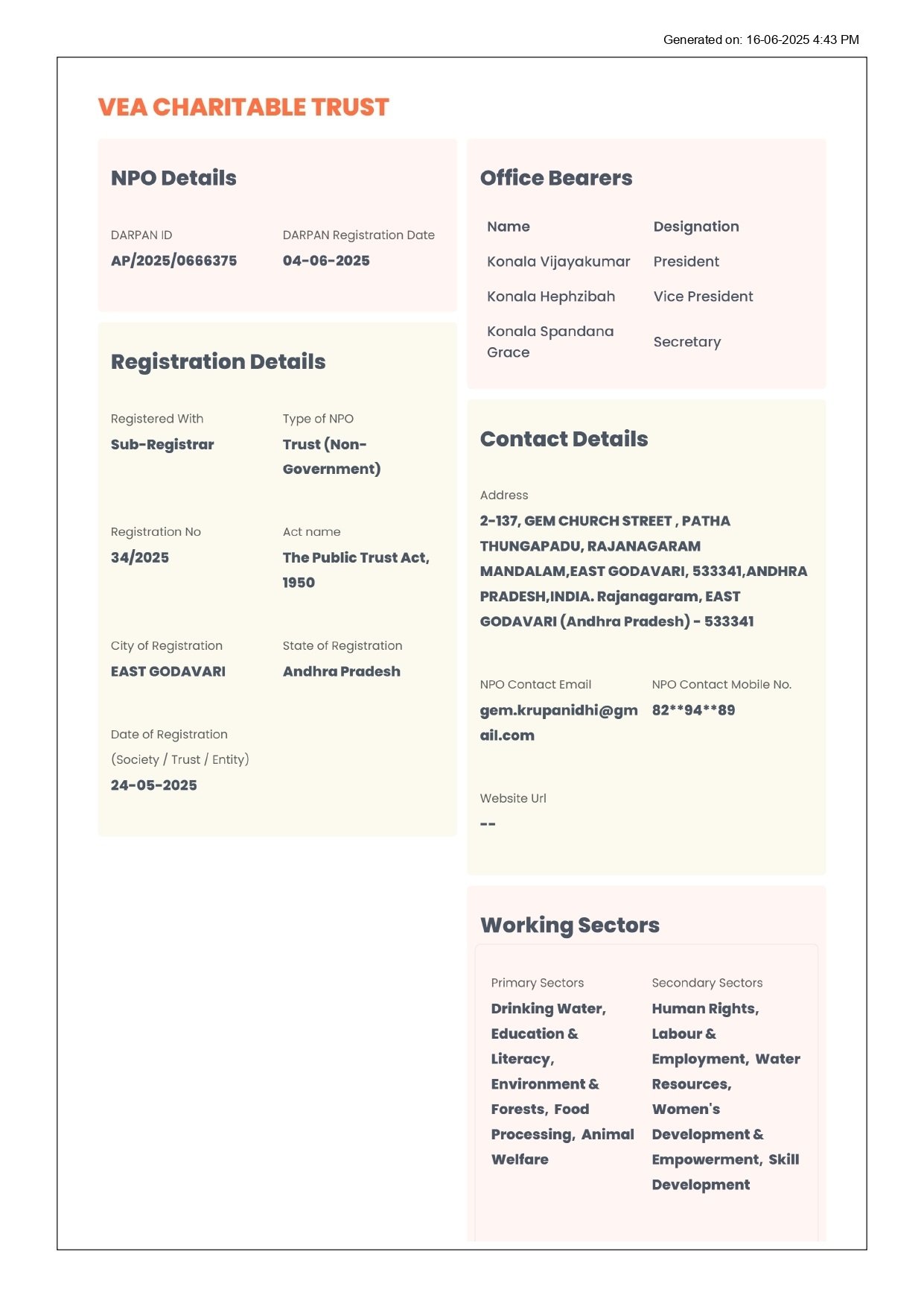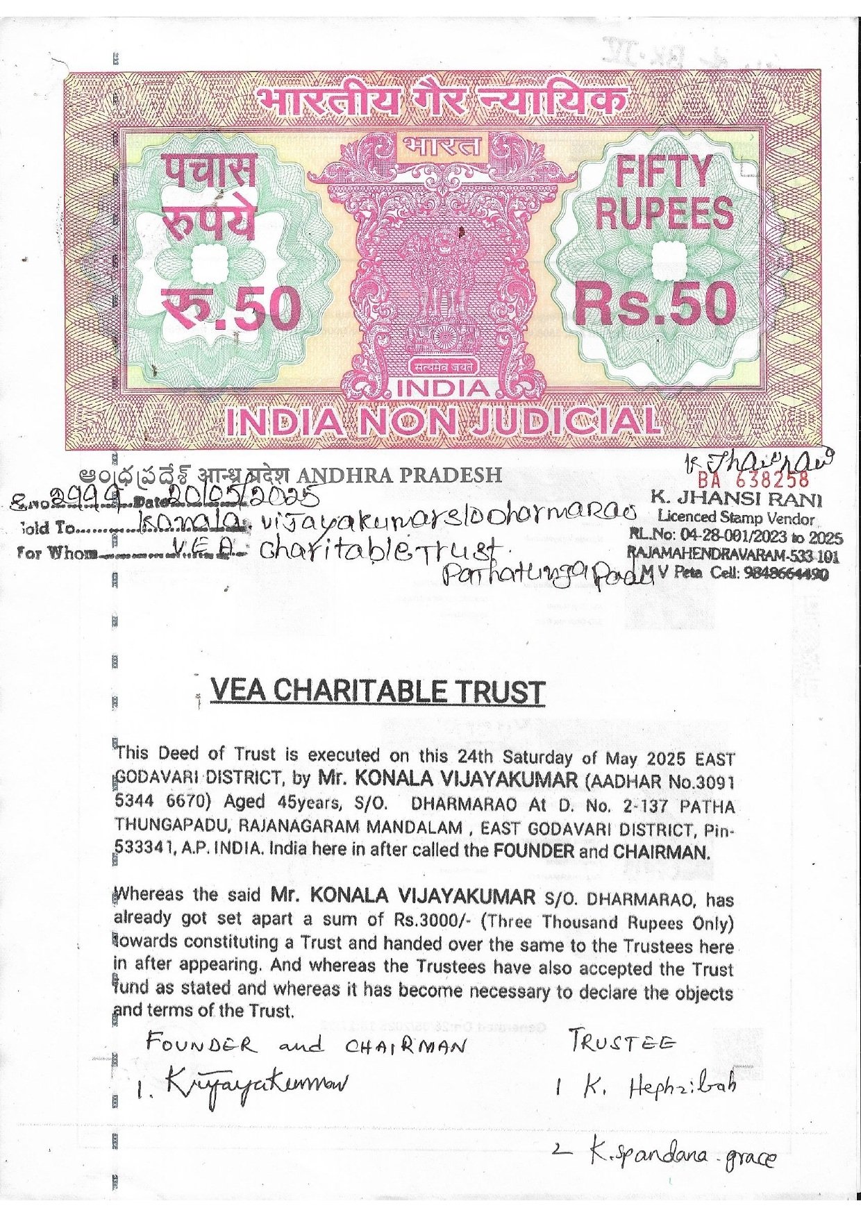 Our organization is led by a visionary leader, Sri. KONALA VIJAYAKUMAR, whose unwavering commitment to our cause has been the driving force behind our success. Established in 2025, since then the organization has been expanding continuously in terms of social and Educational Development and Medical services, Food, and Sheltering for Orphans. It has worked for the promotion of sustainable, equitable, and participatory development, social welfare, and social justice through Programs for social work, the Establishment of Educational Technical and Medical Institutes supportive relief and education to the people, Health services, and other human service through social research and dissemination of socially relevant knowledge, social intervention through training and field action, contribution to social and welfare policy and program at State, National and International levels, over the years, The organization has among others (VEA CHARITABLE TRUST) thrusts made A significant contribution to planning, action strategies, and Human Resource Development in several areas, ranging from sustainable rural and urban development to education, health, Agriculture, and Human Rights, in all case, the focus has been on the disadvantaged and marginalized section of societies, such as women, children and tribal. At VEA CHARITABLE TRUST , we envision a world where education is a fundamental right for all. Since our inception in [2025], we have been dedicated to breaking down barriers to education, especially for marginalized and disadvantaged communities. Through our school-building initiatives, scholarship programs, and teacher training, we are working towards creating a brighter future for children and youth, empowering them with the knowledge and skills they need to succeed.